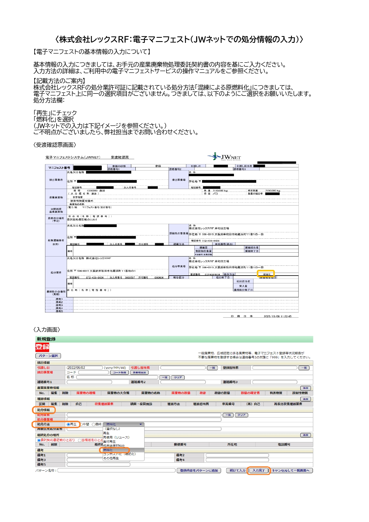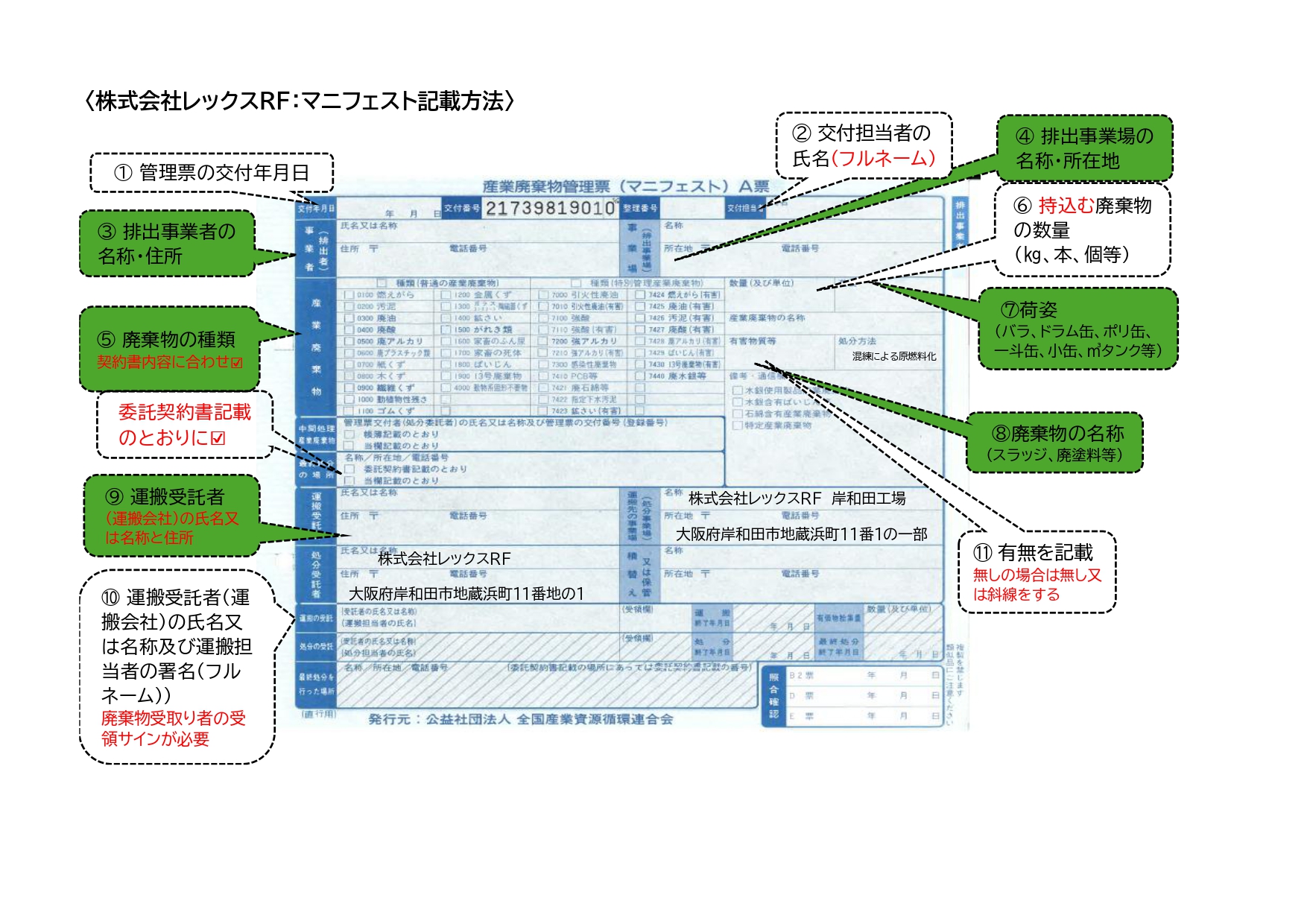 ・紙マニフェスト記載例 ・電子マニフェスト入力例